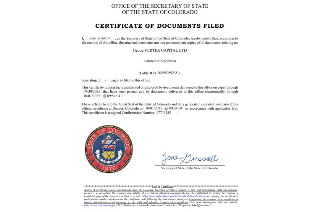 Şirket Adı: Geode VERTEX CAPITAL LTD